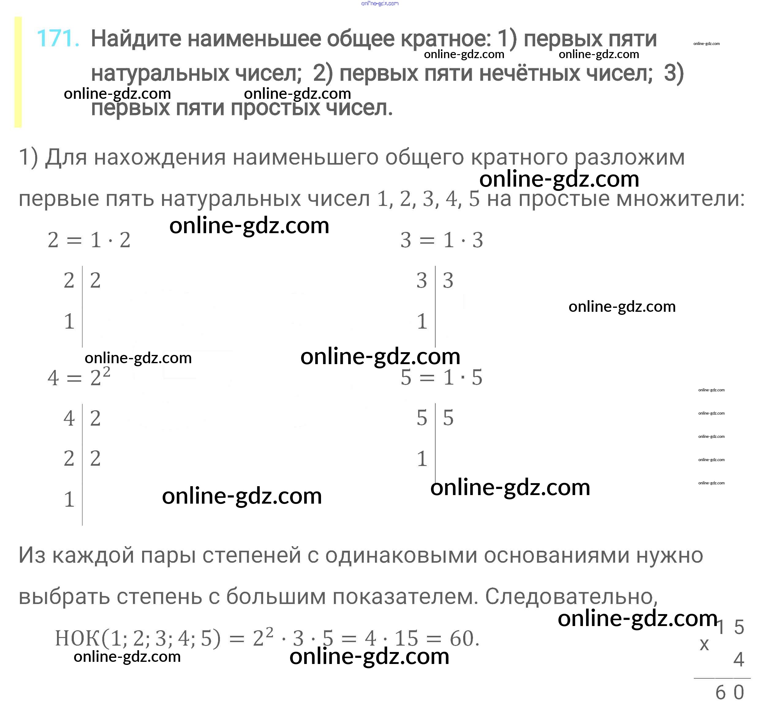 Готовые домашние задания по Математике за 6 класс Учебник Мерзляк, Полонский Алгоритм успеха 2016 - Глава 1. Делимость натуральных чисел (упражнения) 171