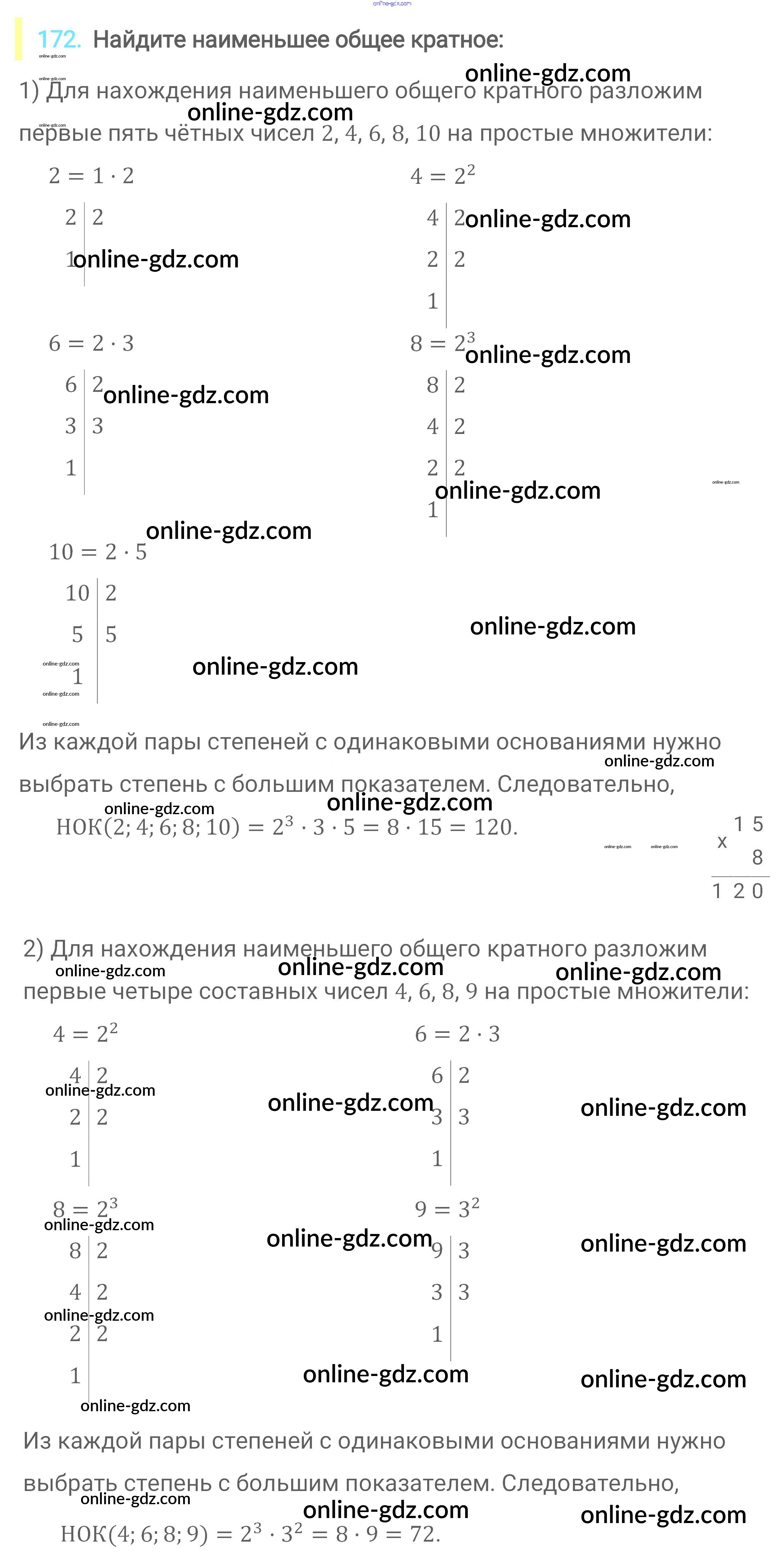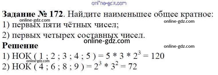 Готовые домашние задания по Математике за 6 класс Учебник Мерзляк, Полонский Алгоритм успеха 2016 - Глава 1. Делимость натуральных чисел (упражнения) 172
