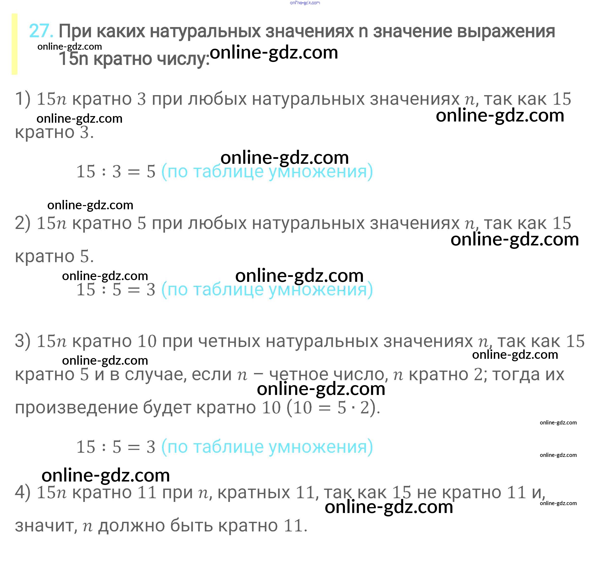 Готовые домашние задания по Математике за 6 класс Учебник Мерзляк, Полонский Алгоритм успеха 2016 - Глава 1. Делимость натуральных чисел (упражнения) 27