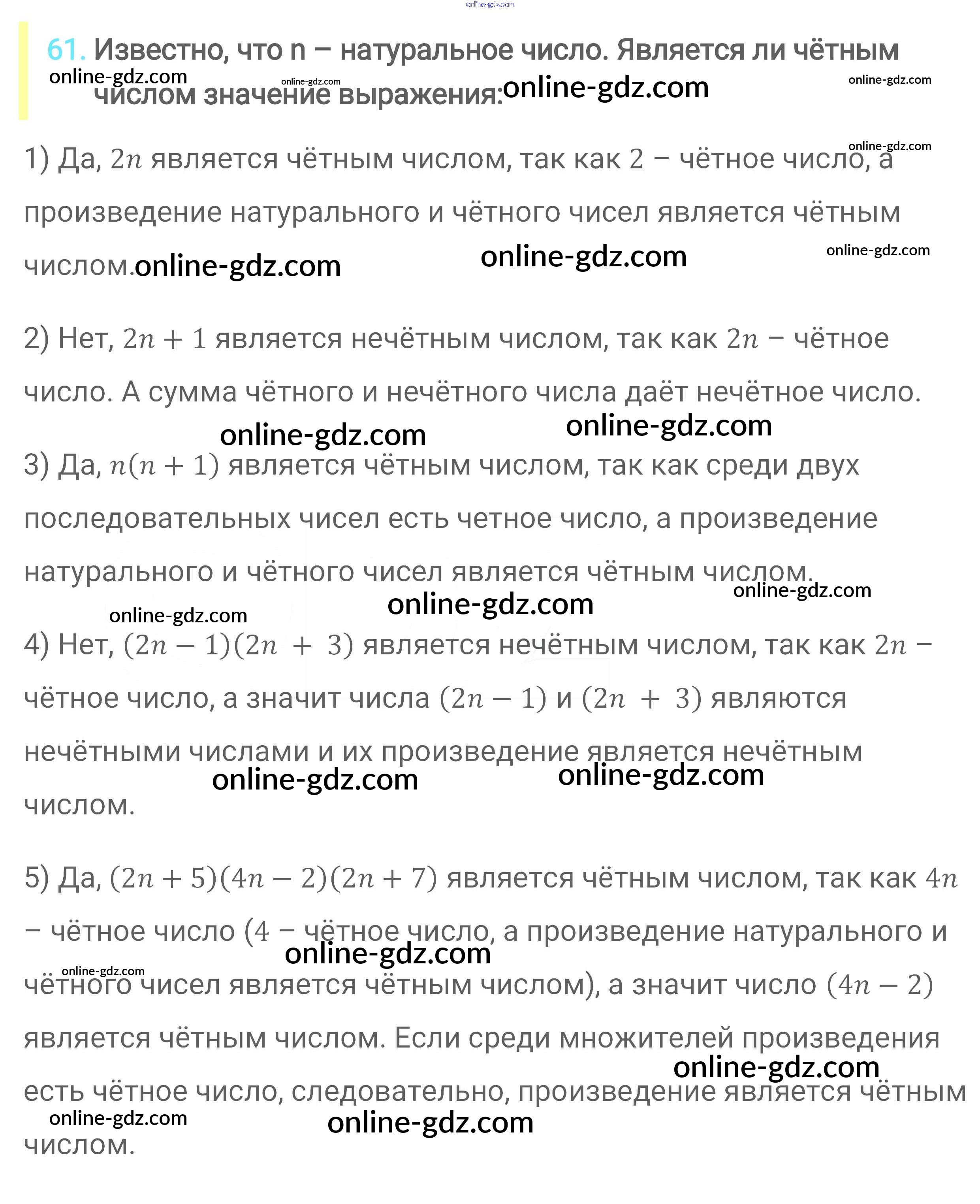 Готовые домашние задания по Математике за 6 класс Учебник Мерзляк, Полонский Алгоритм успеха 2016 - Глава 1. Делимость натуральных чисел (упражнения) 61