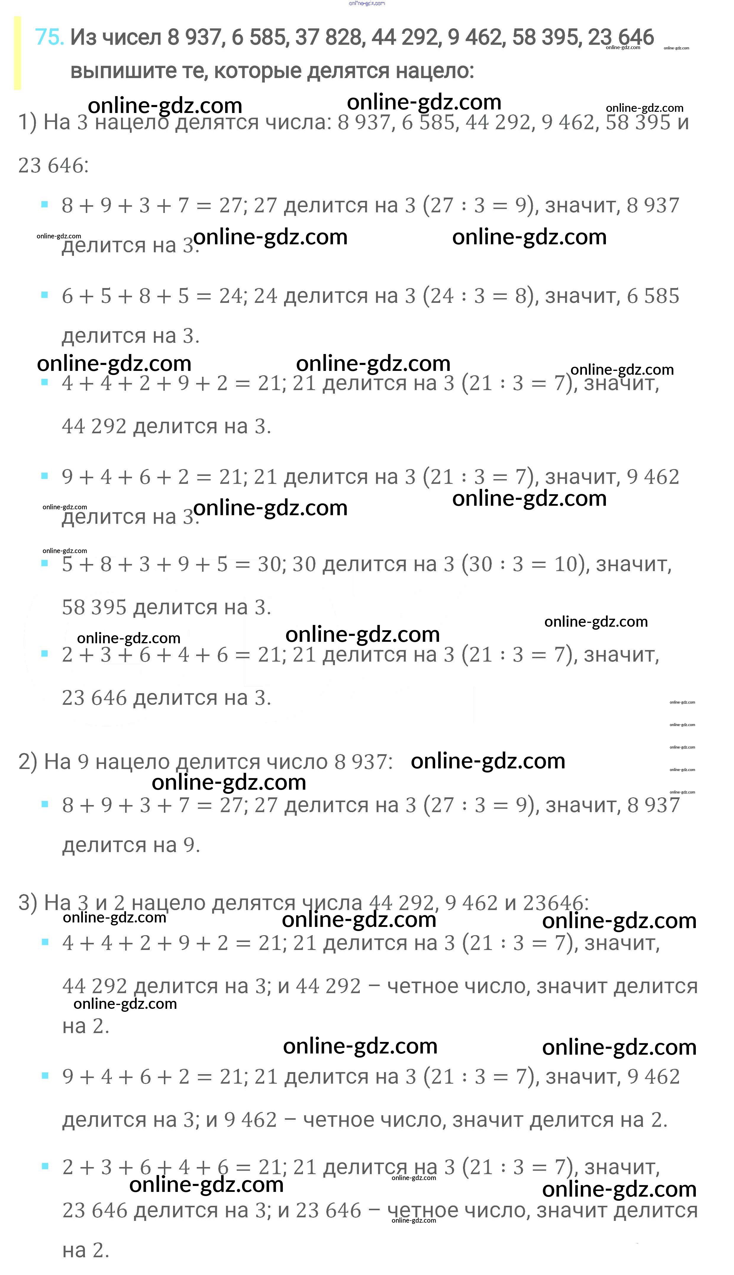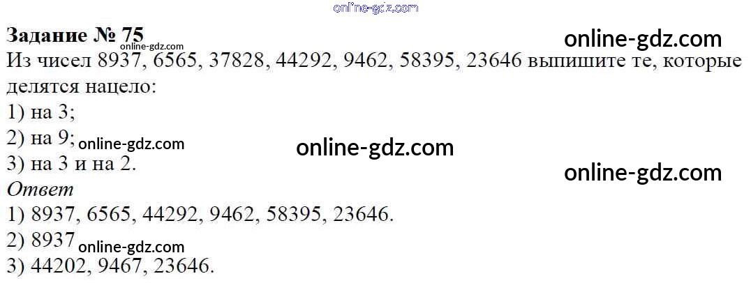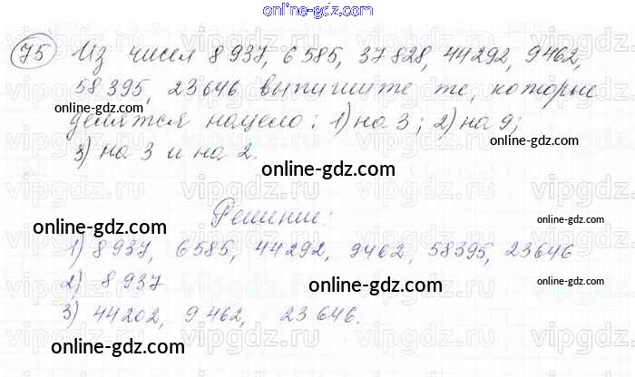 Готовые домашние задания по Математике за 6 класс Учебник Мерзляк, Полонский Алгоритм успеха 2016 - Глава 1. Делимость натуральных чисел (упражнения) 75