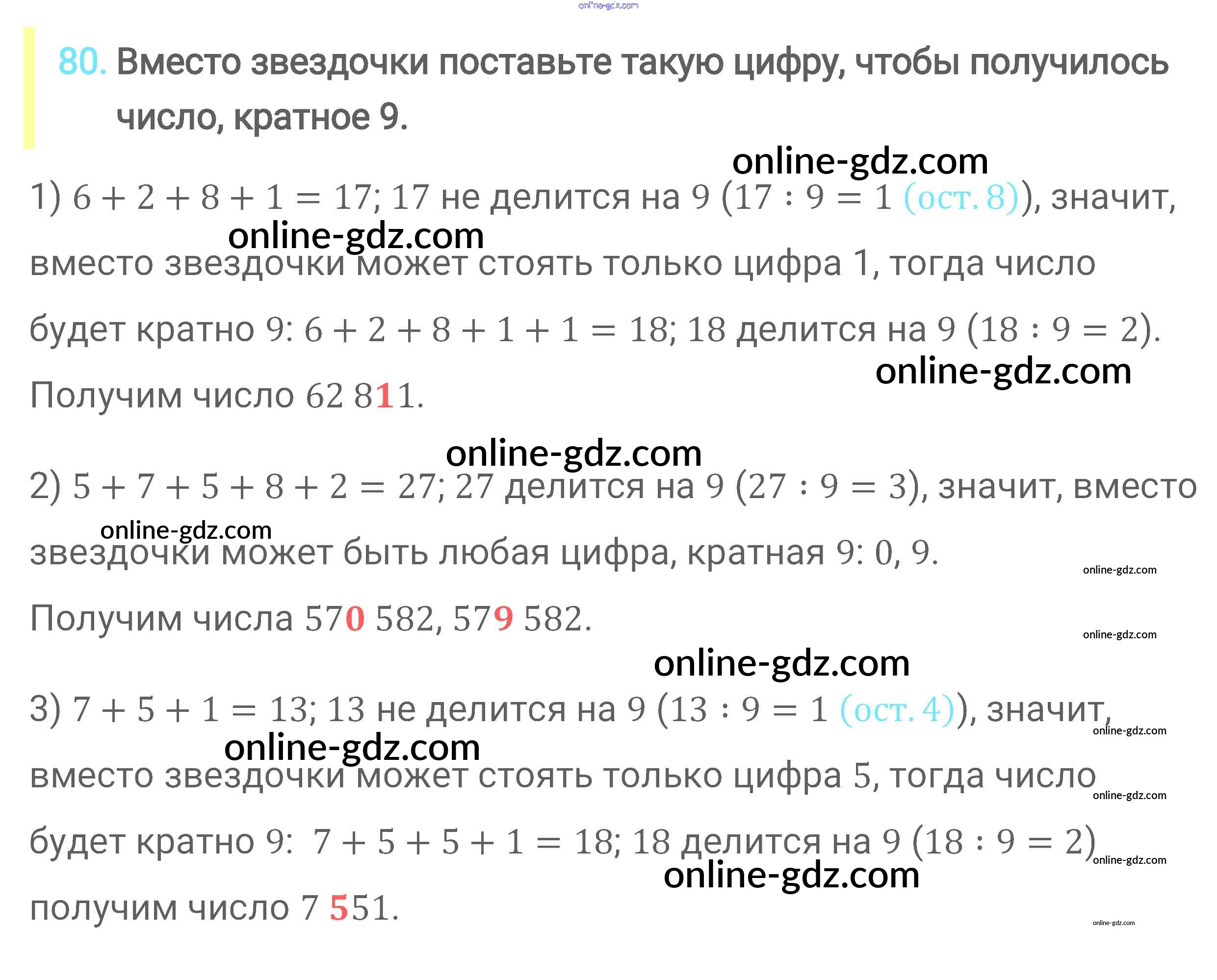Готовые домашние задания по Математике за 6 класс Учебник Мерзляк, Полонский Алгоритм успеха 2016 - Глава 1. Делимость натуральных чисел (упражнения) 80