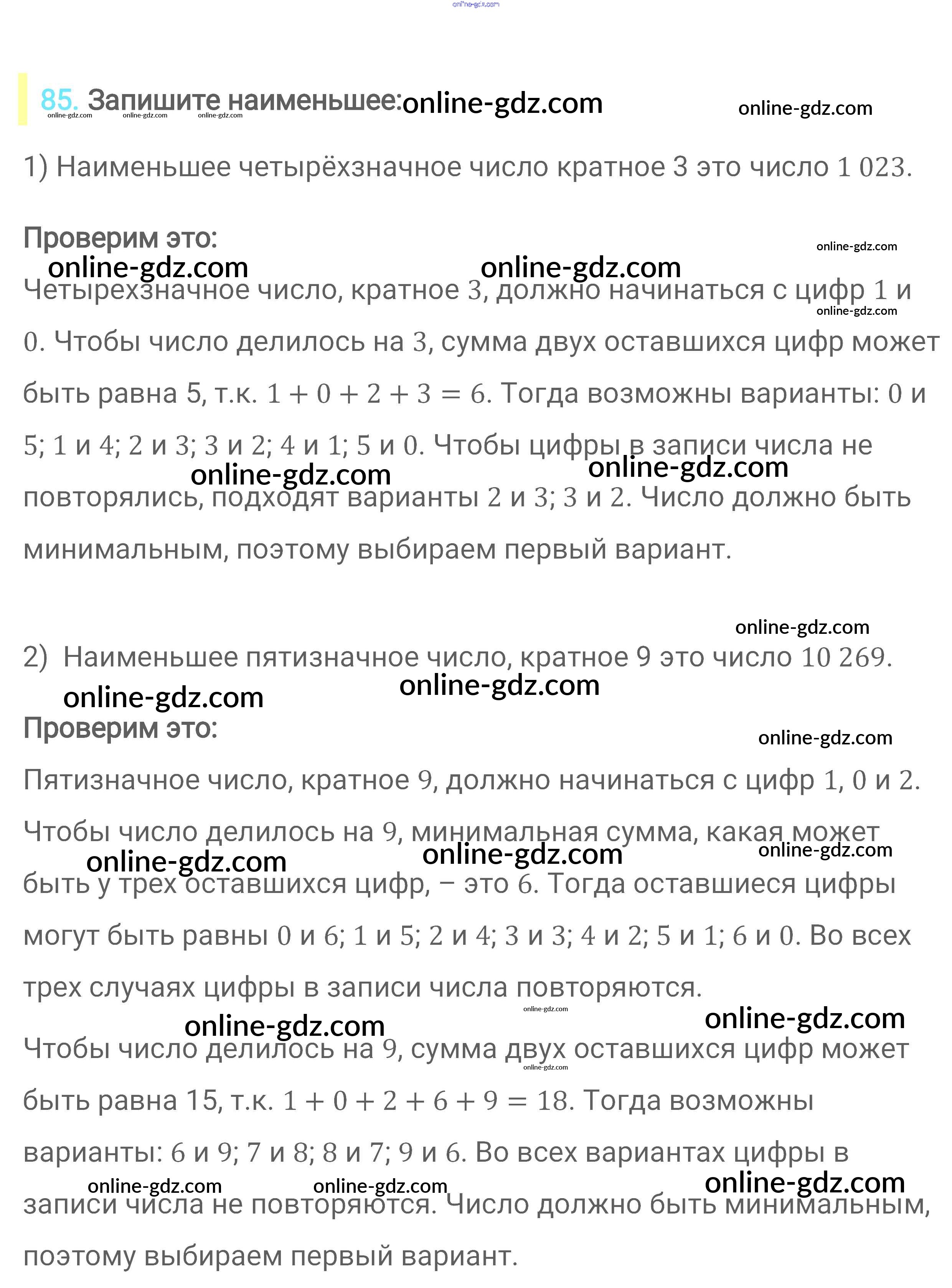 Готовые домашние задания по Математике за 6 класс Учебник Мерзляк, Полонский Алгоритм успеха 2016 - Глава 1. Делимость натуральных чисел (упражнения) 85