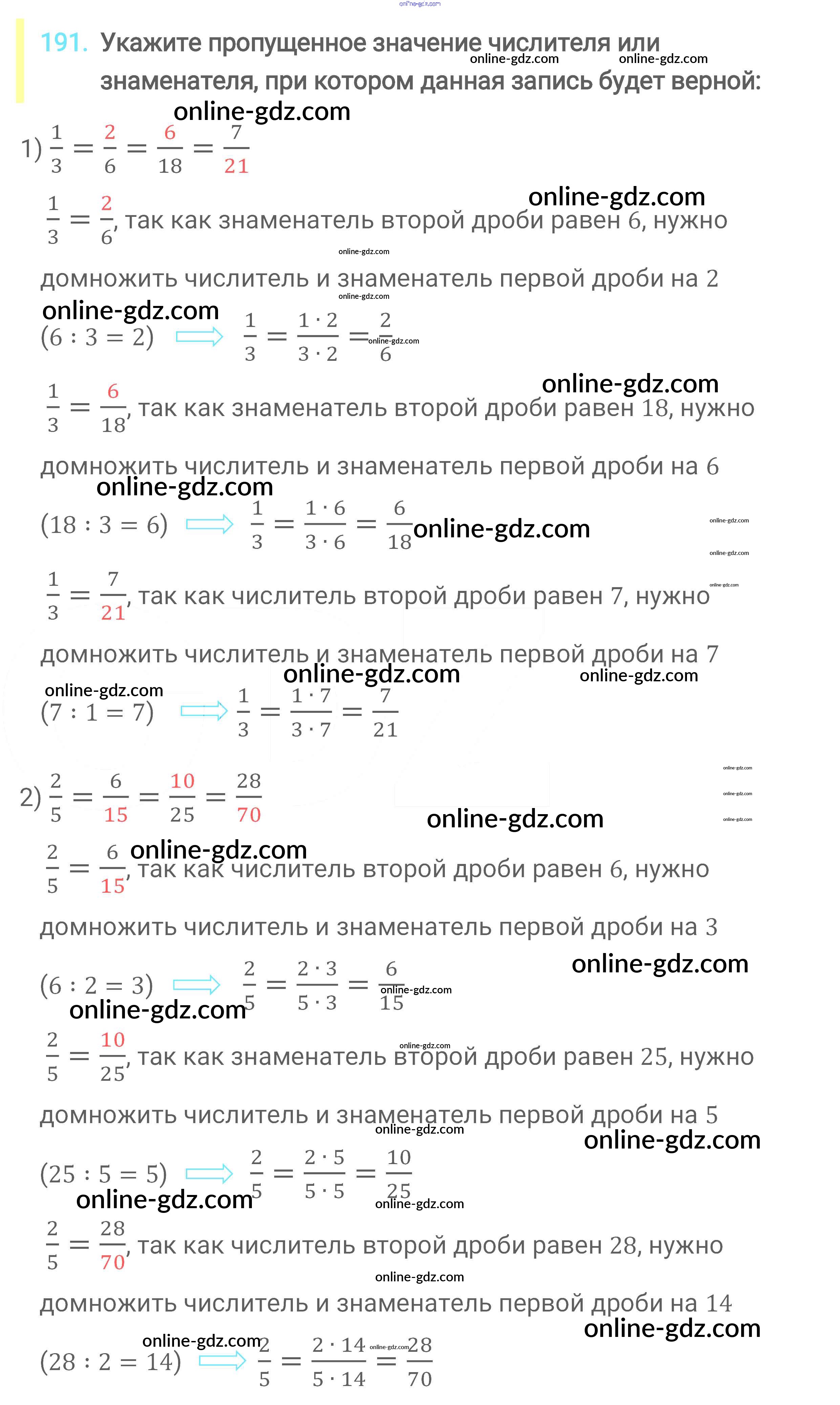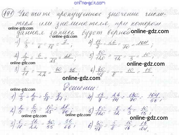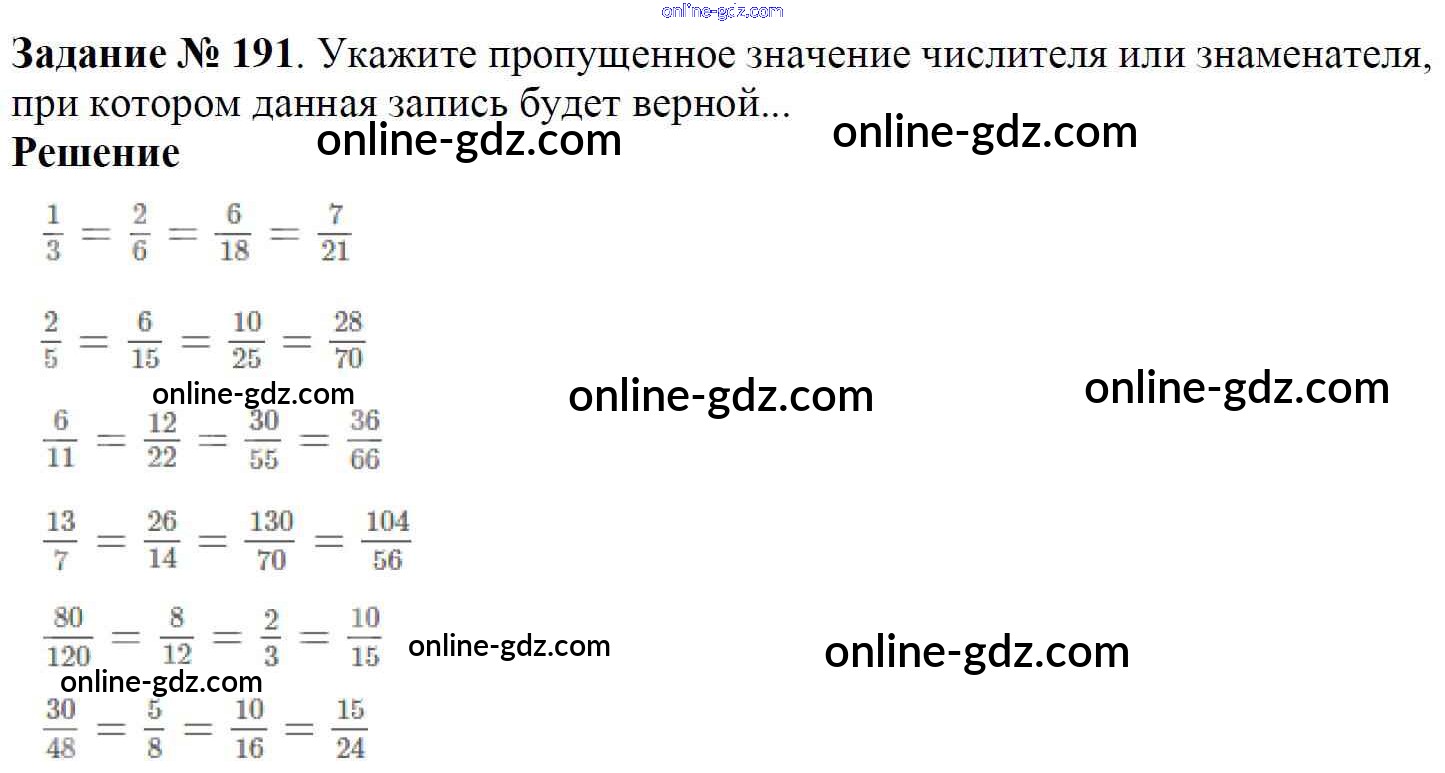Готовые домашние задания по Математике за 6 класс Учебник Мерзляк, Полонский Алгоритм успеха 2016 - Глава 2. Обыкновенные дроби (упражнения) 191