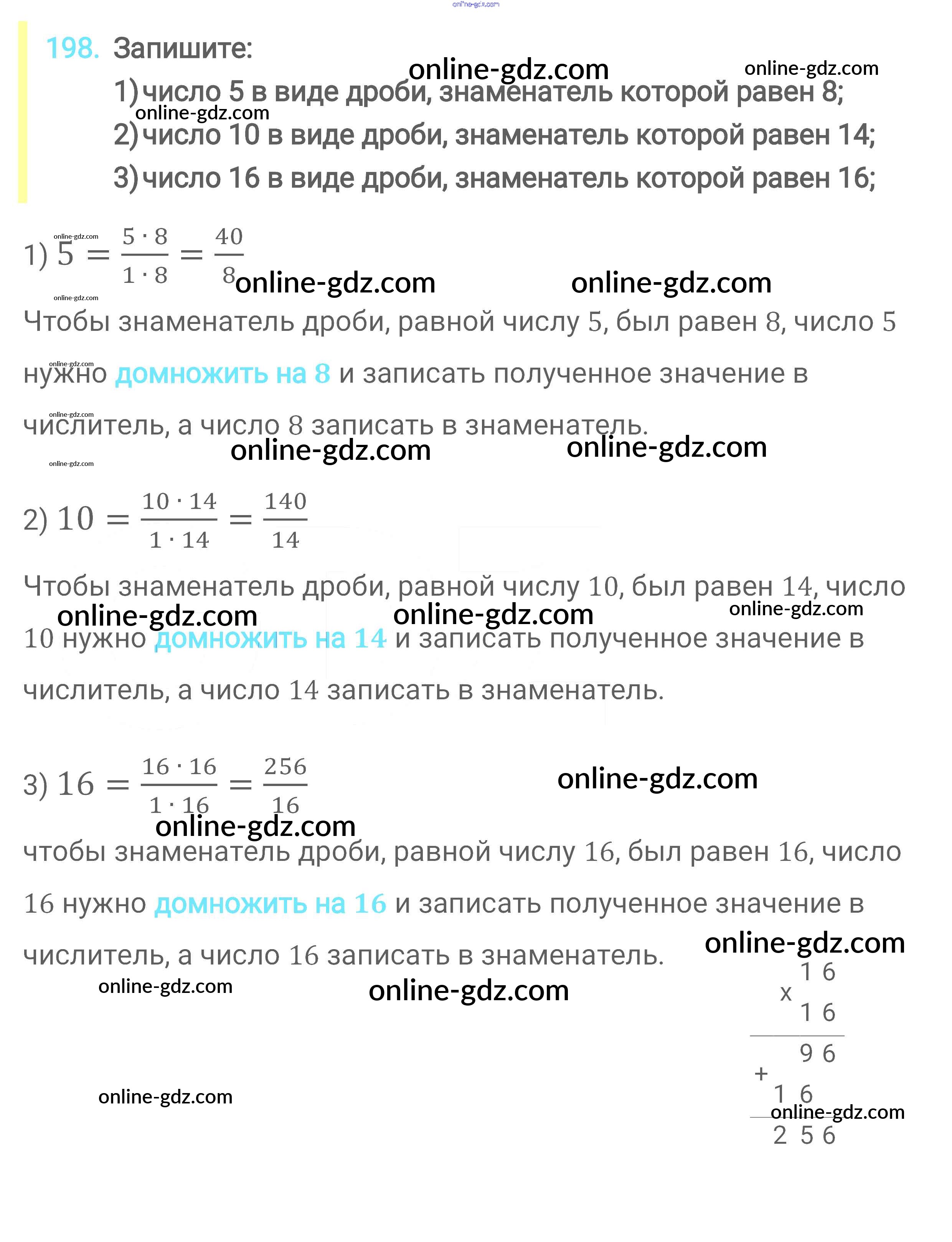 Готовые домашние задания по Математике за 6 класс Учебник Мерзляк, Полонский Алгоритм успеха 2016 - Глава 2. Обыкновенные дроби (упражнения) 198