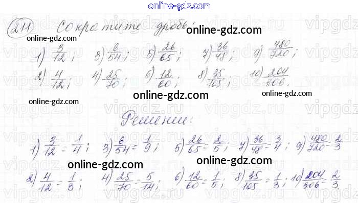 Готовые домашние задания по Математике за 6 класс Учебник Мерзляк, Полонский Алгоритм успеха 2016 - Глава 2. Обыкновенные дроби (упражнения) 211