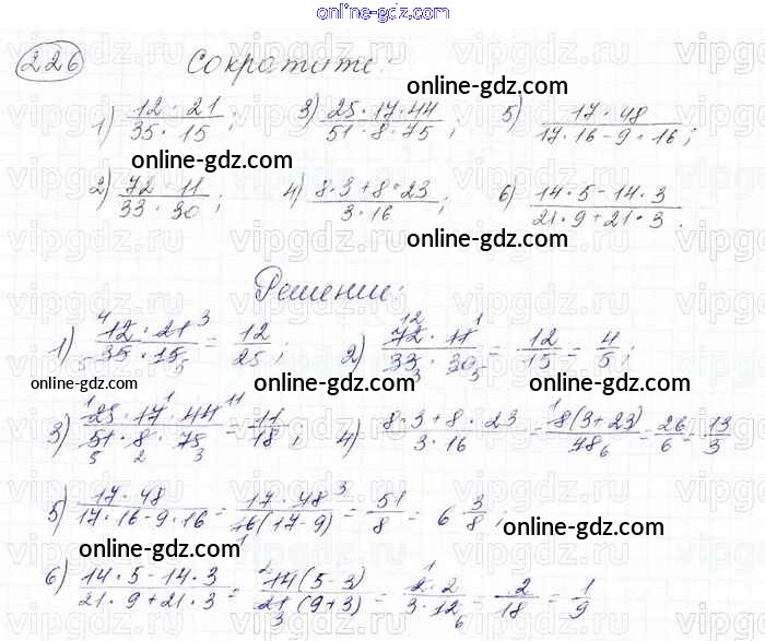 Готовые домашние задания по Математике за 6 класс Учебник Мерзляк, Полонский Алгоритм успеха 2016 - Глава 2. Обыкновенные дроби (упражнения) 226