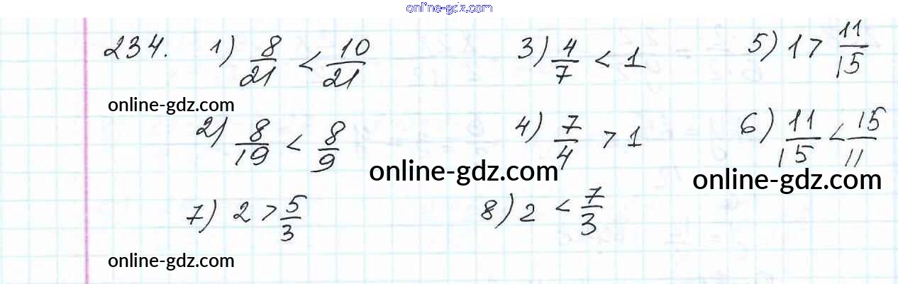 Готовые домашние задания по Математике за 6 класс Учебник Мерзляк, Полонский Алгоритм успеха 2016 - Глава 2. Обыкновенные дроби (упражнения) 234