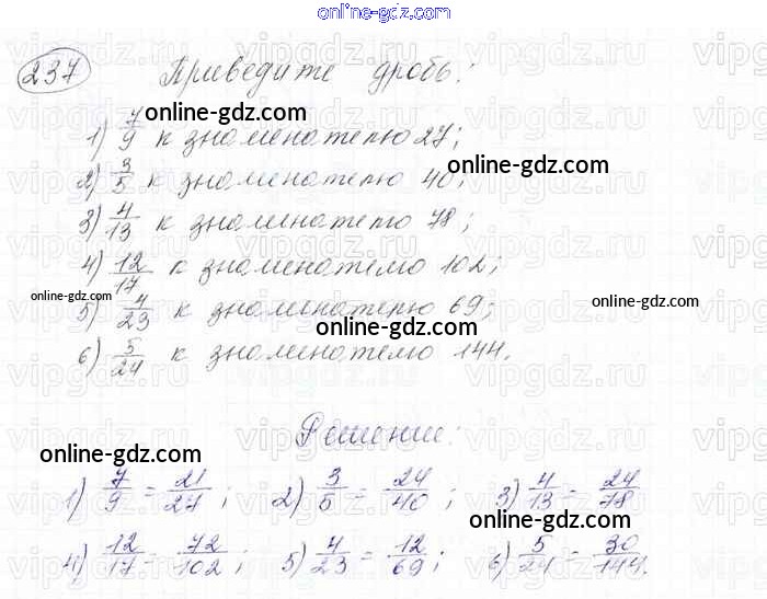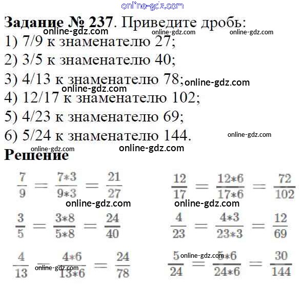 Готовые домашние задания по Математике за 6 класс Учебник Мерзляк, Полонский Алгоритм успеха 2016 - Глава 2. Обыкновенные дроби (упражнения) 237