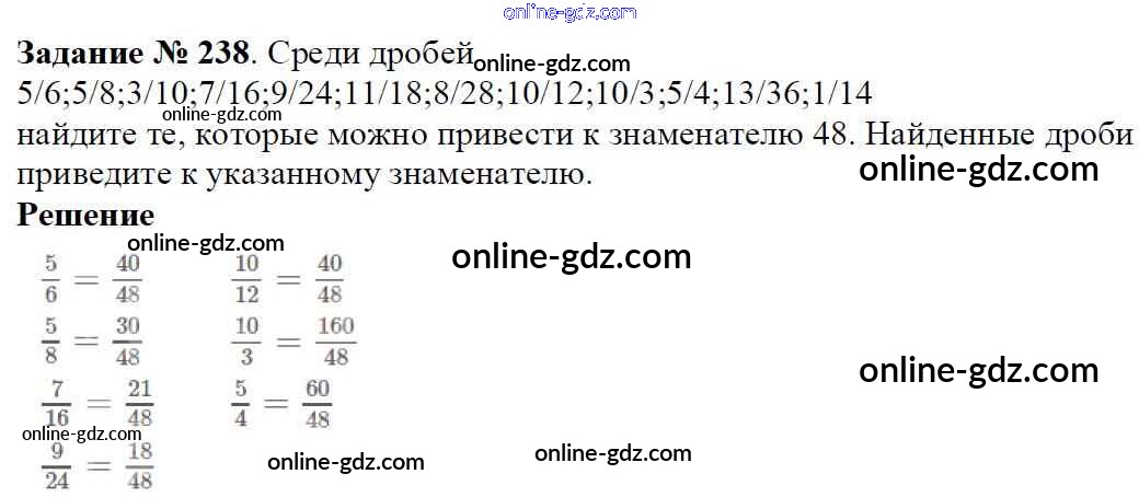 Готовые домашние задания по Математике за 6 класс Учебник Мерзляк, Полонский Алгоритм успеха 2016 - Глава 2. Обыкновенные дроби (упражнения) 238