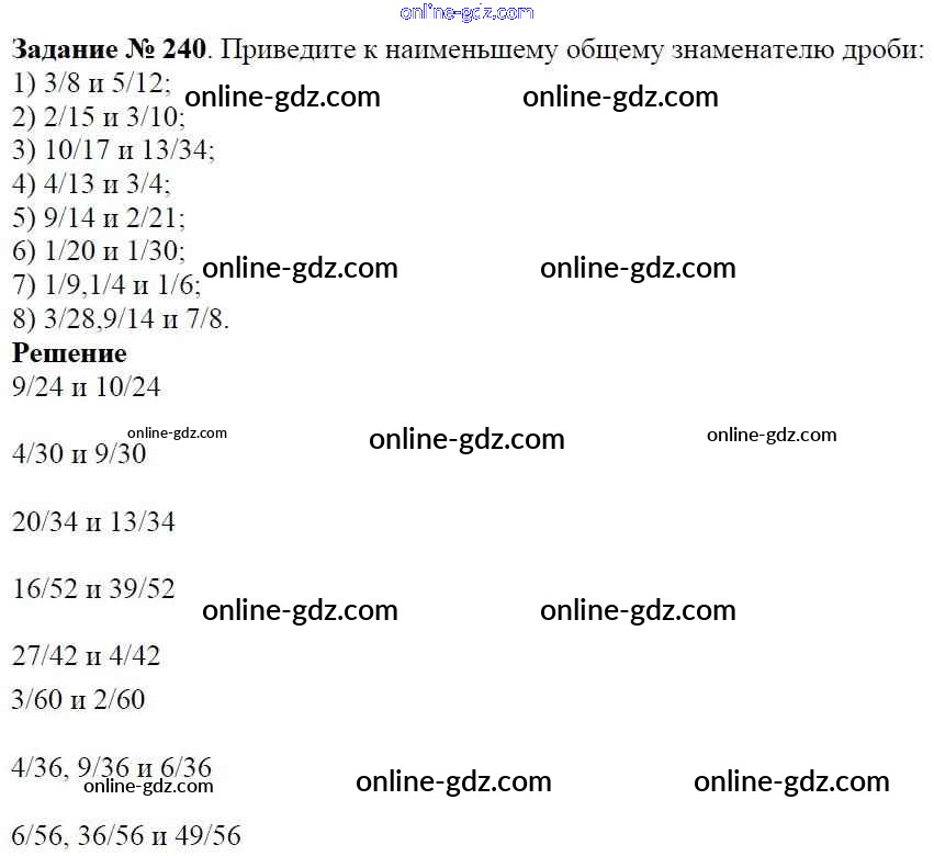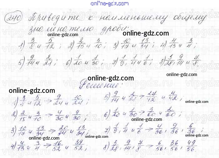 Готовые домашние задания по Математике за 6 класс Учебник Мерзляк, Полонский Алгоритм успеха 2016 - Глава 2. Обыкновенные дроби (упражнения) 240
