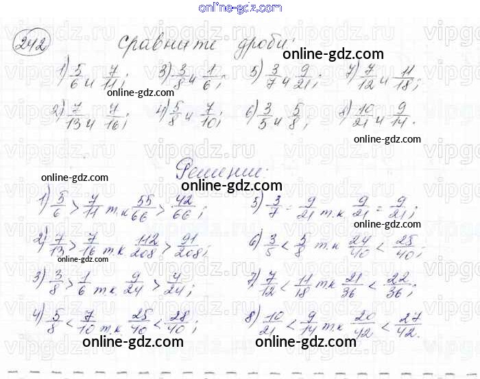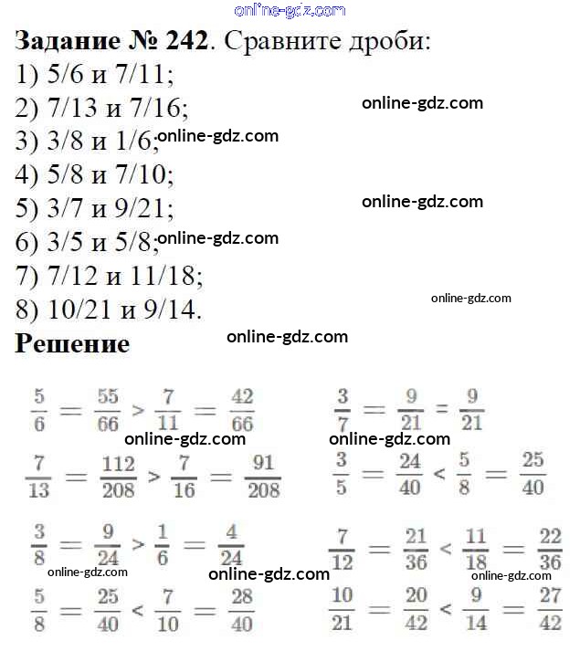 Готовые домашние задания по Математике за 6 класс Учебник Мерзляк, Полонский Алгоритм успеха 2016 - Глава 2. Обыкновенные дроби (упражнения) 242
