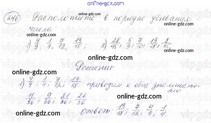 Готовые домашние задания по Математике за 6 класс Учебник Мерзляк, Полонский Алгоритм успеха 2016 - Глава 2. Обыкновенные дроби (упражнения) 246
