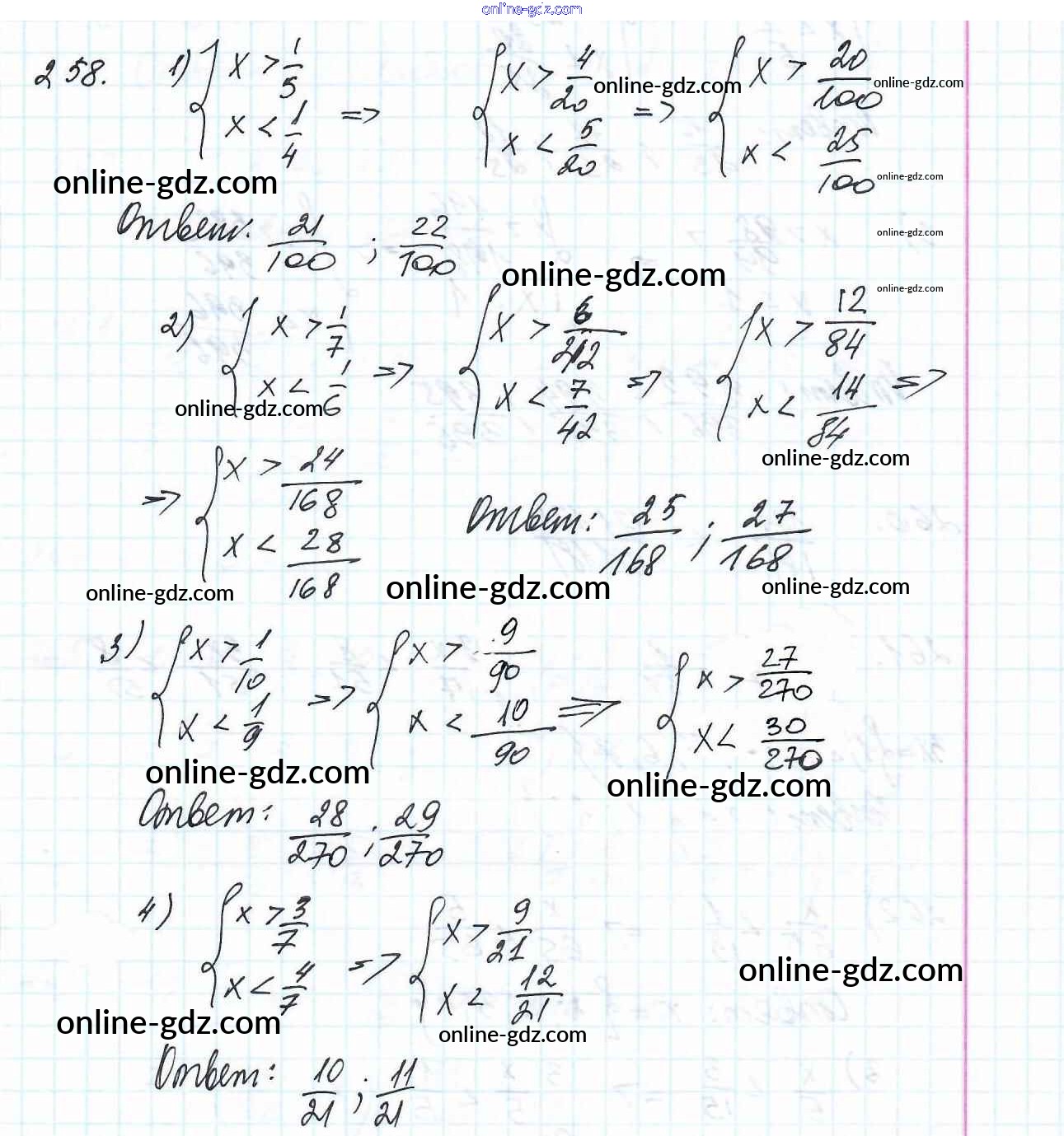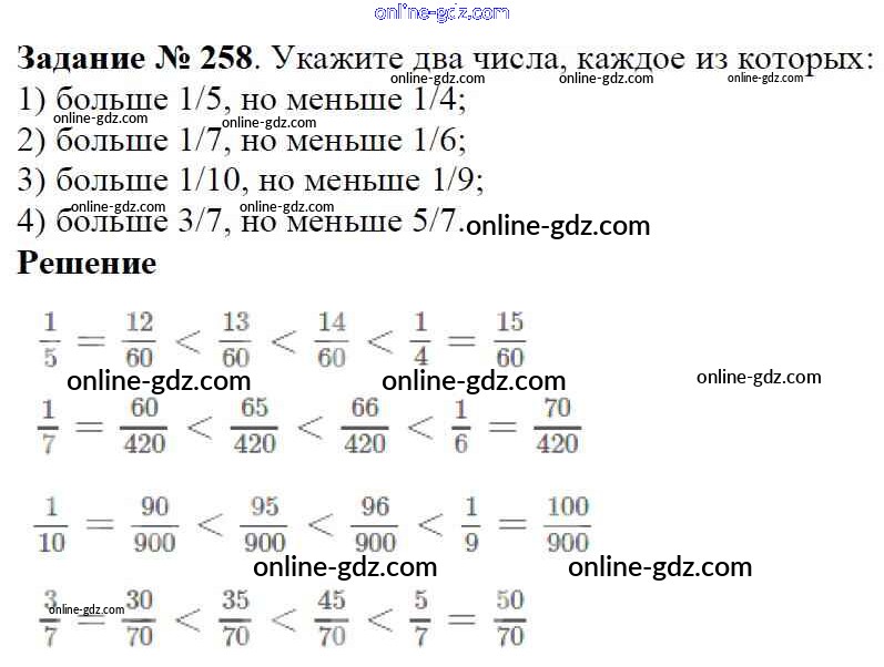 Готовые домашние задания по Математике за 6 класс Учебник Мерзляк, Полонский Алгоритм успеха 2016 - Глава 2. Обыкновенные дроби (упражнения) 258
