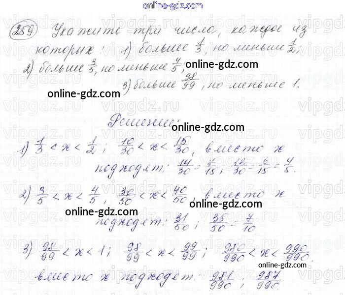 Готовые домашние задания по Математике за 6 класс Учебник Мерзляк, Полонский Алгоритм успеха 2016 - Глава 2. Обыкновенные дроби (упражнения) 259