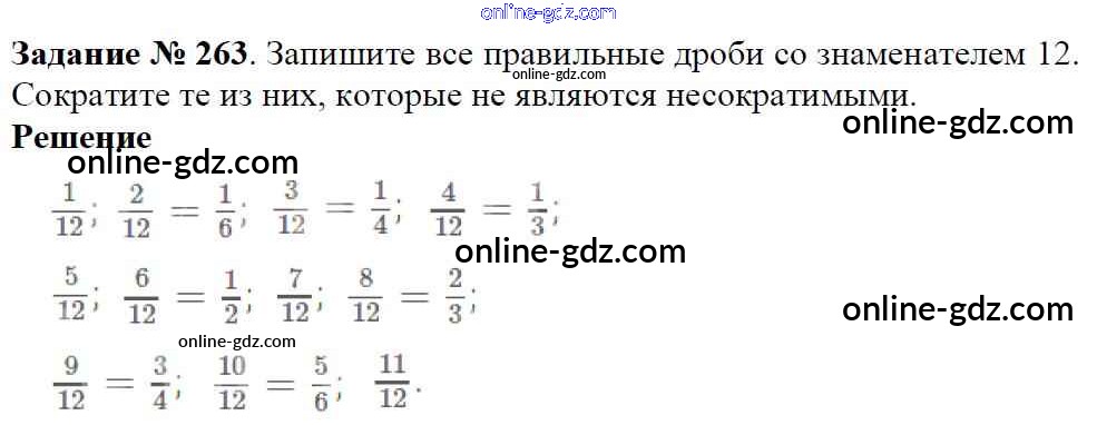 Готовые домашние задания по Математике за 6 класс Учебник Мерзляк, Полонский Алгоритм успеха 2016 - Глава 2. Обыкновенные дроби (упражнения) 263