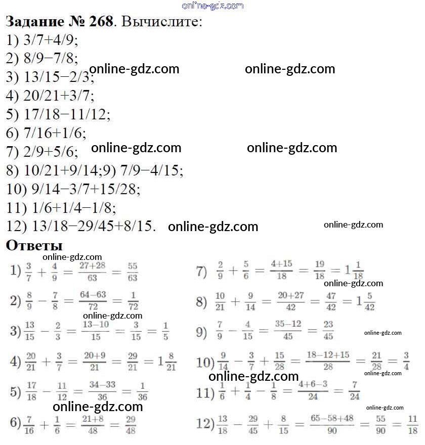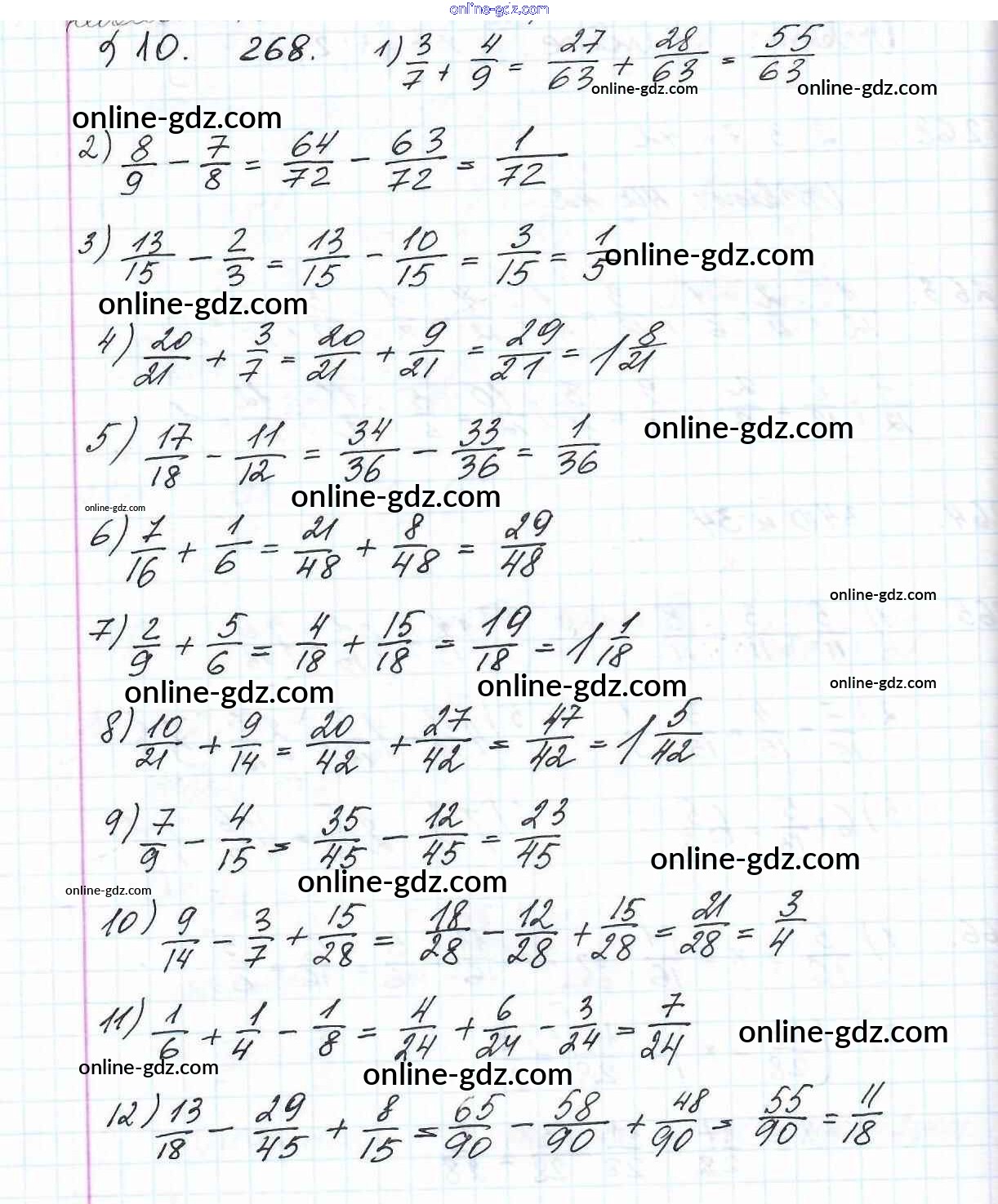 Готовые домашние задания по Математике за 6 класс Учебник Мерзляк, Полонский Алгоритм успеха 2016 - Глава 2. Обыкновенные дроби (упражнения) 268