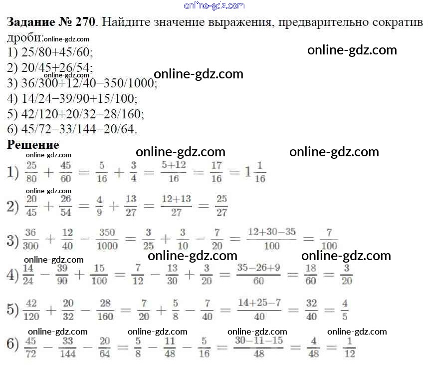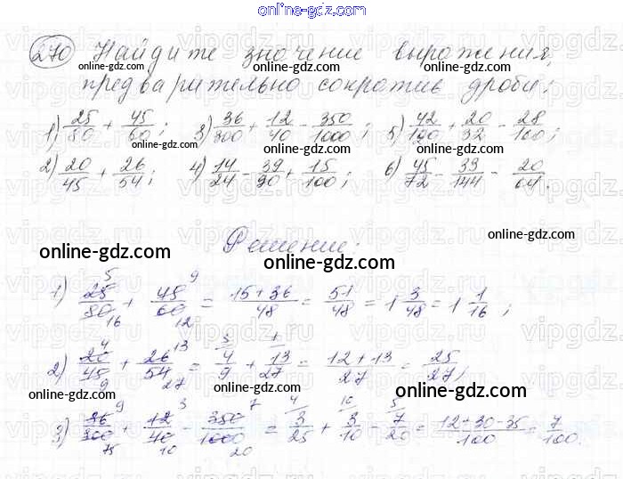 Готовые домашние задания по Математике за 6 класс Учебник Мерзляк, Полонский Алгоритм успеха 2016 - Глава 2. Обыкновенные дроби (упражнения) 270
