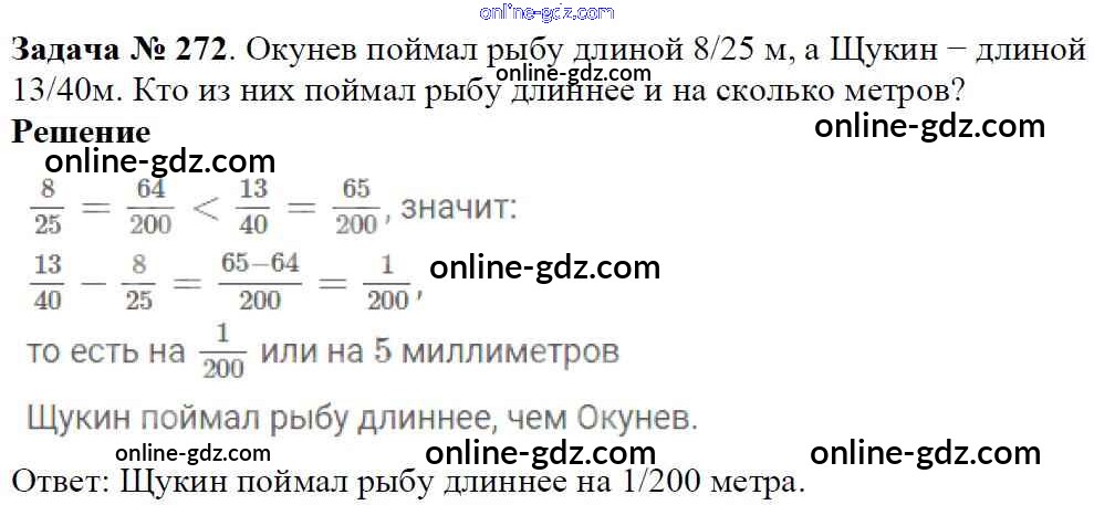 Готовые домашние задания по Математике за 6 класс Учебник Мерзляк, Полонский Алгоритм успеха 2016 - Глава 2. Обыкновенные дроби (упражнения) 272