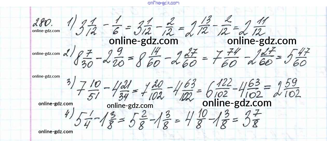 Готовые домашние задания по Математике за 6 класс Учебник Мерзляк, Полонский Алгоритм успеха 2016 - Глава 2. Обыкновенные дроби (упражнения) 280
