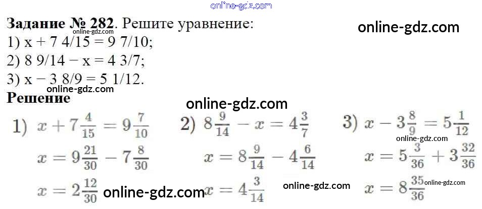 Готовые домашние задания по Математике за 6 класс Учебник Мерзляк, Полонский Алгоритм успеха 2016 - Глава 2. Обыкновенные дроби (упражнения) 282