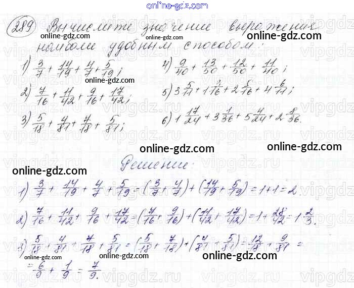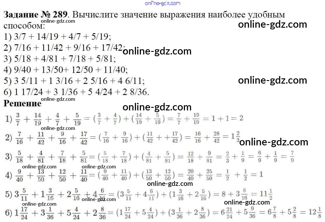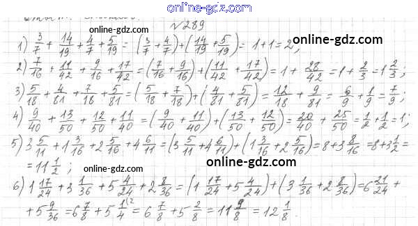 Готовые домашние задания по Математике за 6 класс Учебник Мерзляк, Полонский Алгоритм успеха 2016 - Глава 2. Обыкновенные дроби (упражнения) 289