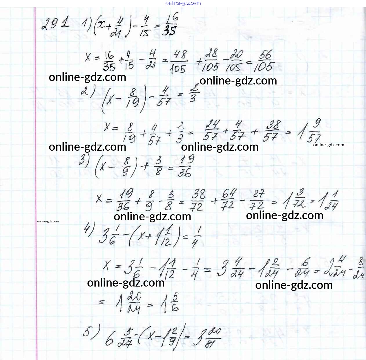 Готовые домашние задания по Математике за 6 класс Учебник Мерзляк, Полонский Алгоритм успеха 2016 - Глава 2. Обыкновенные дроби (упражнения) 291