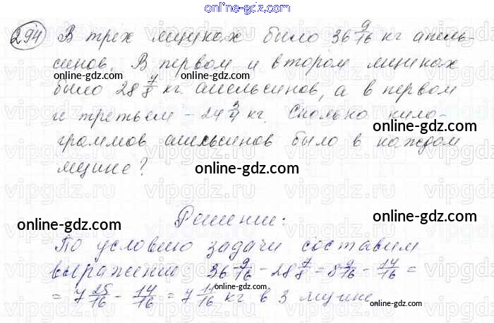 Готовые домашние задания по Математике за 6 класс Учебник Мерзляк, Полонский Алгоритм успеха 2016 - Глава 2. Обыкновенные дроби (упражнения) 294