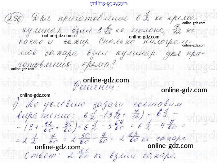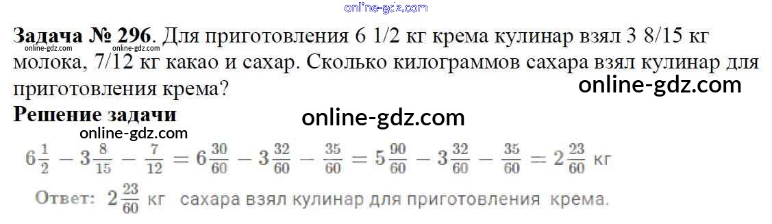 Готовые домашние задания по Математике за 6 класс Учебник Мерзляк, Полонский Алгоритм успеха 2016 - Глава 2. Обыкновенные дроби (упражнения) 296