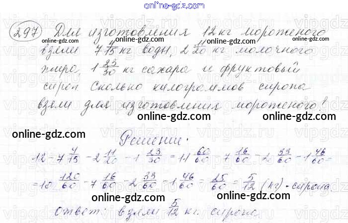 Готовые домашние задания по Математике за 6 класс Учебник Мерзляк, Полонский Алгоритм успеха 2016 - Глава 2. Обыкновенные дроби (упражнения) 297