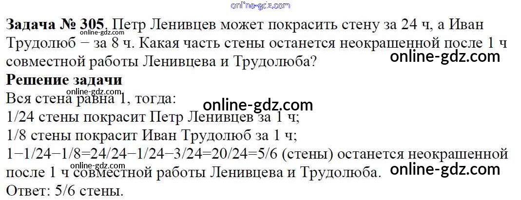 Готовые домашние задания по Математике за 6 класс Учебник Мерзляк, Полонский Алгоритм успеха 2016 - Глава 2. Обыкновенные дроби (упражнения) 305