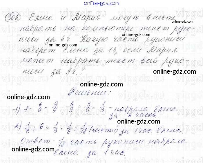 Готовые домашние задания по Математике за 6 класс Учебник Мерзляк, Полонский Алгоритм успеха 2016 - Глава 2. Обыкновенные дроби (упражнения) 306