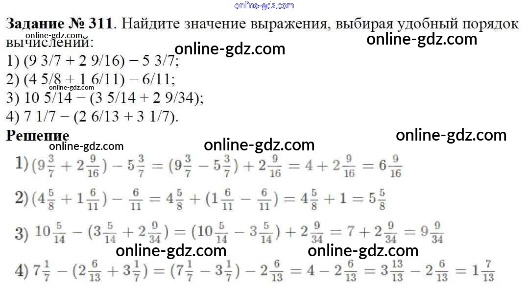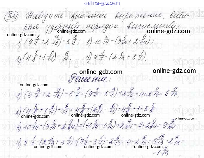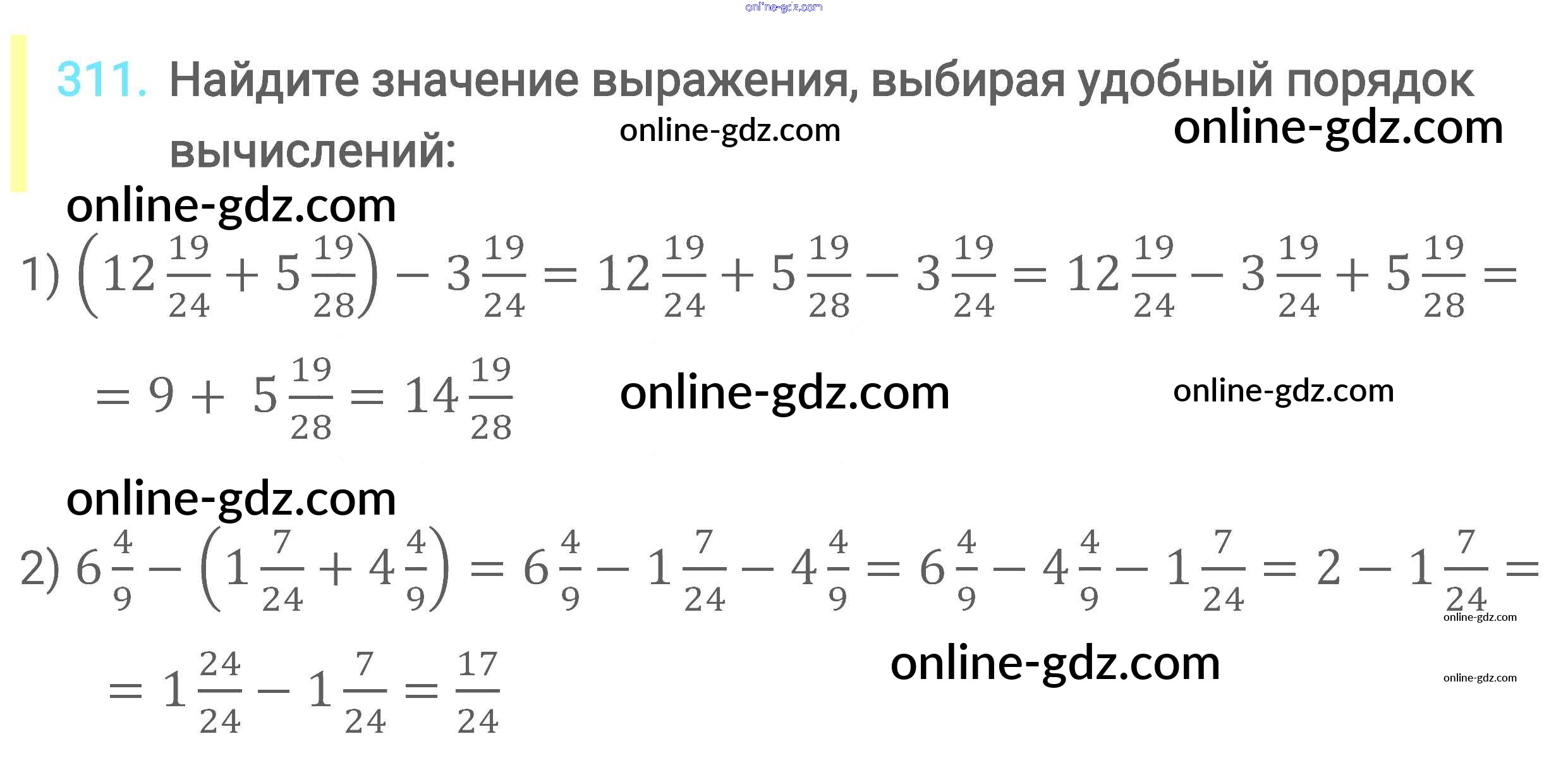 Готовые домашние задания по Математике за 6 класс Учебник Мерзляк, Полонский Алгоритм успеха 2016 - Глава 2. Обыкновенные дроби (упражнения) 311