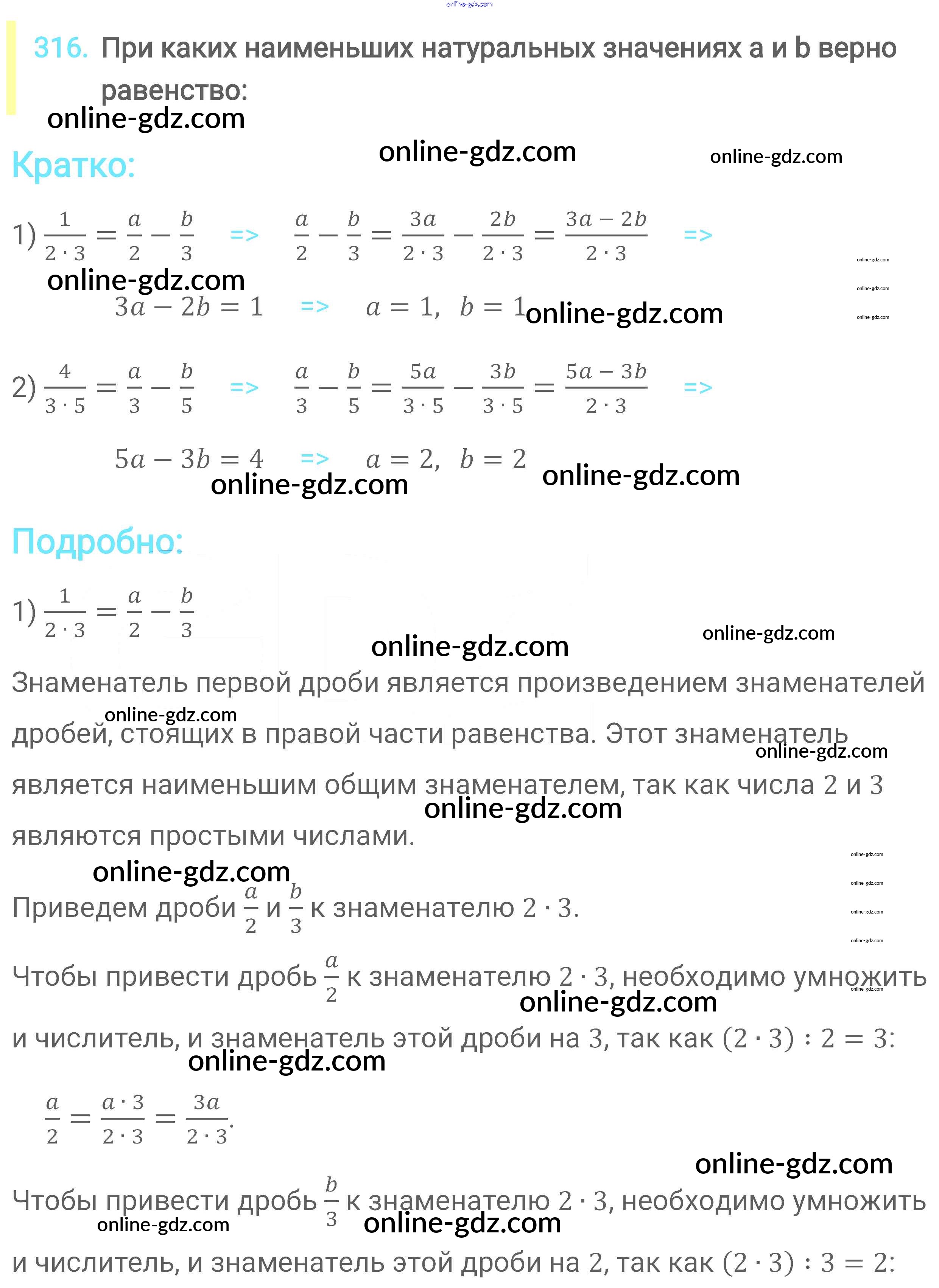Готовые домашние задания по Математике за 6 класс Учебник Мерзляк, Полонский Алгоритм успеха 2016 - Глава 2. Обыкновенные дроби (упражнения) 316