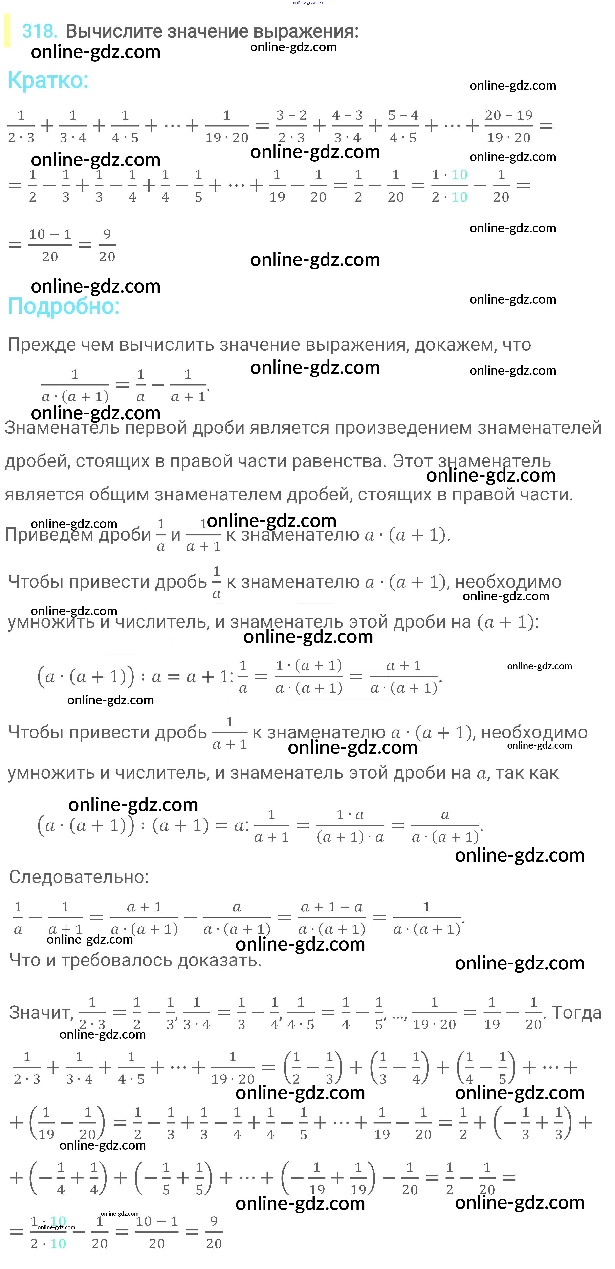 Готовые домашние задания по Математике за 6 класс Учебник Мерзляк, Полонский Алгоритм успеха 2016 - Глава 2. Обыкновенные дроби (упражнения) 318
