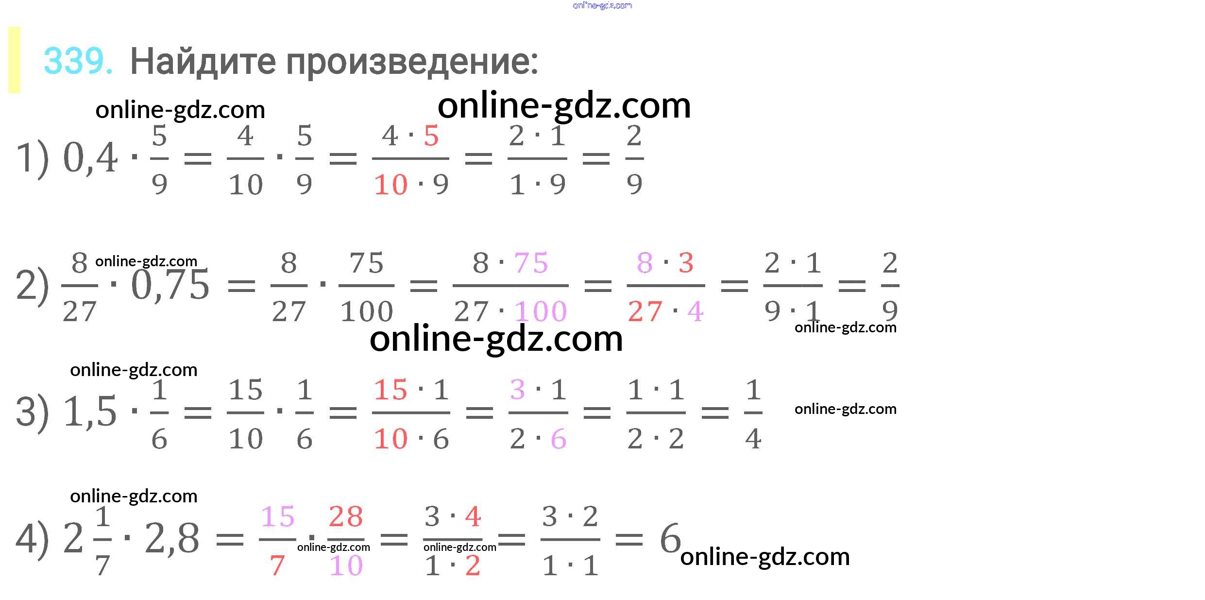 Готовые домашние задания по Математике за 6 класс Учебник Мерзляк, Полонский Алгоритм успеха 2016 - Глава 2. Обыкновенные дроби (упражнения) 339