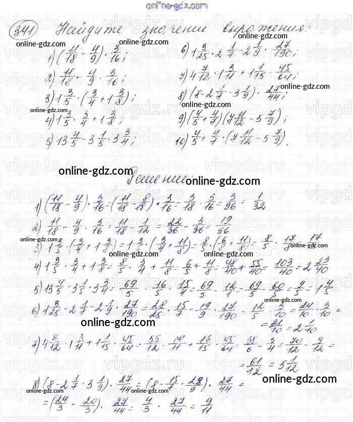 Готовые домашние задания по Математике за 6 класс Учебник Мерзляк, Полонский Алгоритм успеха 2016 - Глава 2. Обыкновенные дроби (упражнения) 341