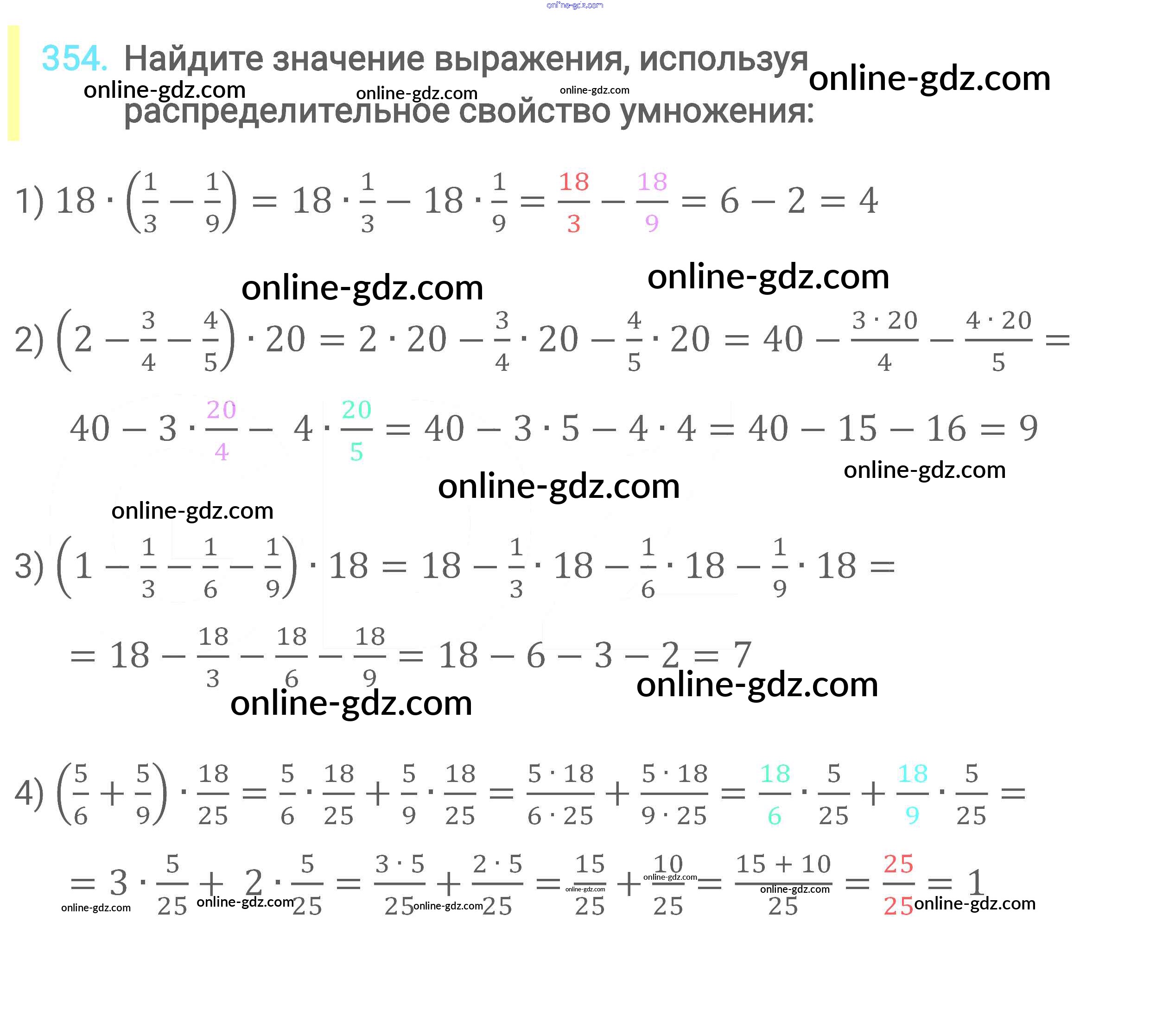 Готовые домашние задания по Математике за 6 класс Учебник Мерзляк, Полонский Алгоритм успеха 2016 - Глава 2. Обыкновенные дроби (упражнения) 354
