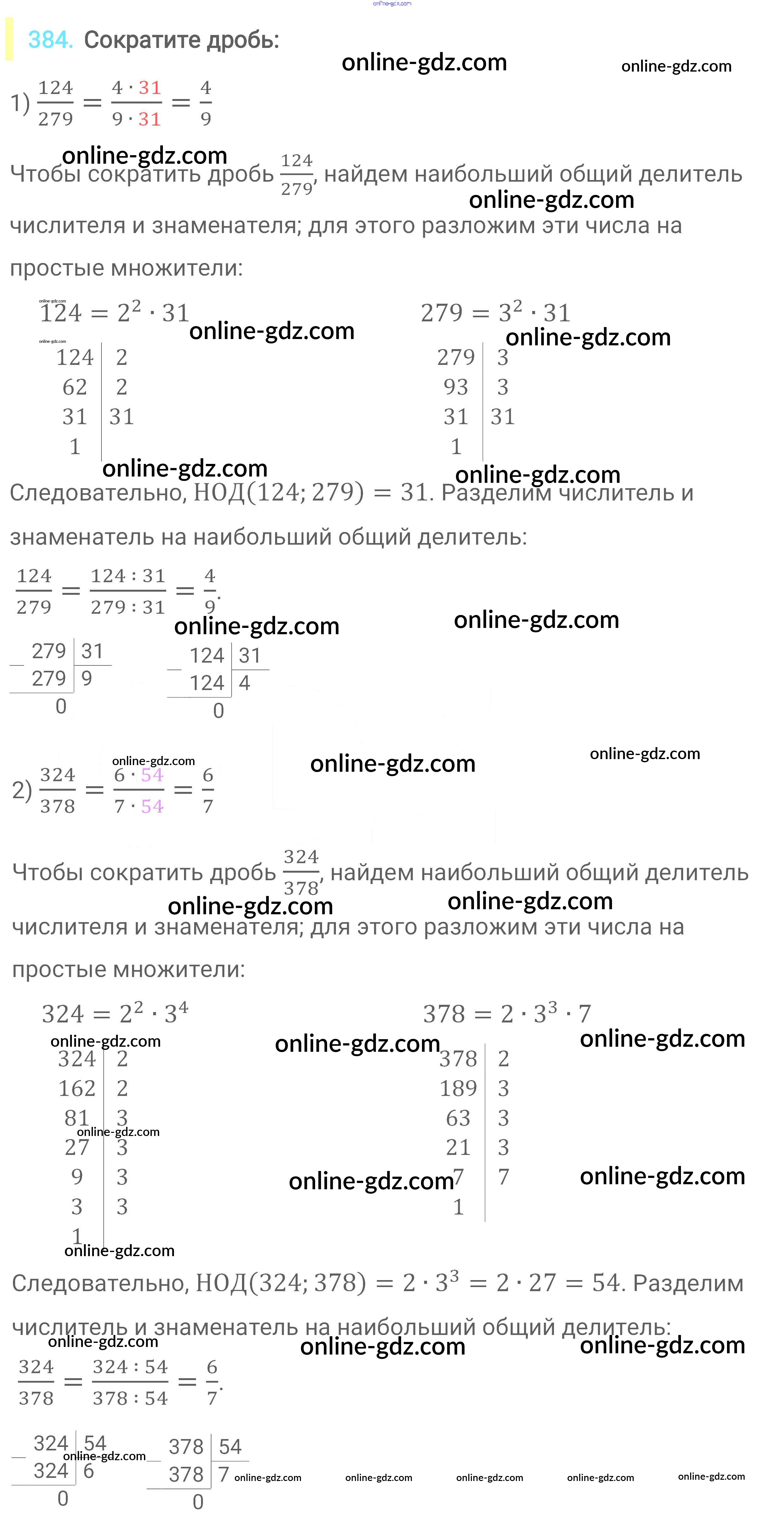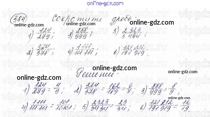 Готовые домашние задания по Математике за 6 класс Учебник Мерзляк, Полонский Алгоритм успеха 2016 - Глава 2. Обыкновенные дроби (упражнения) 384