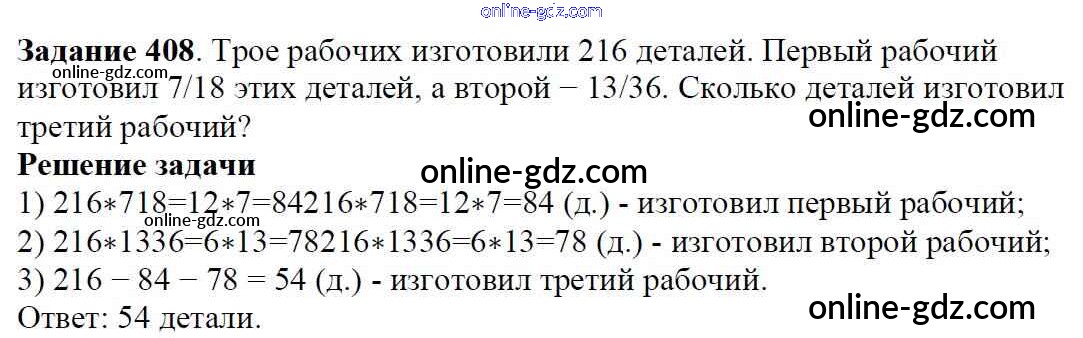 Готовые домашние задания по Математике за 6 класс Учебник Мерзляк, Полонский Алгоритм успеха 2016 - Глава 2. Обыкновенные дроби (упражнения) 408