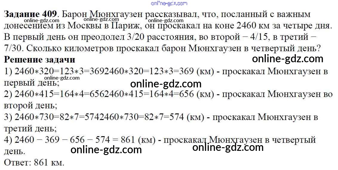 Готовые домашние задания по Математике за 6 класс Учебник Мерзляк, Полонский Алгоритм успеха 2016 - Глава 2. Обыкновенные дроби (упражнения) 409