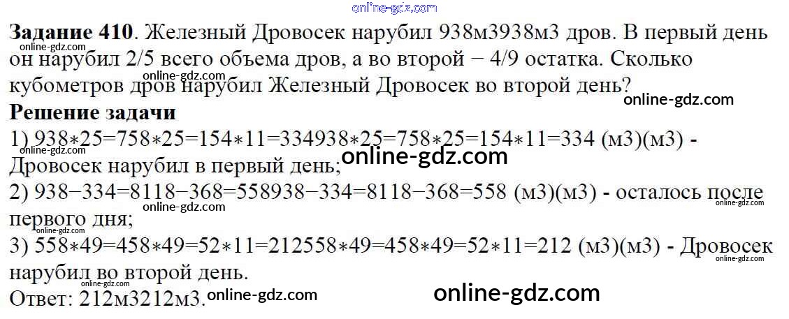 Готовые домашние задания по Математике за 6 класс Учебник Мерзляк, Полонский Алгоритм успеха 2016 - Глава 2. Обыкновенные дроби (упражнения) 410