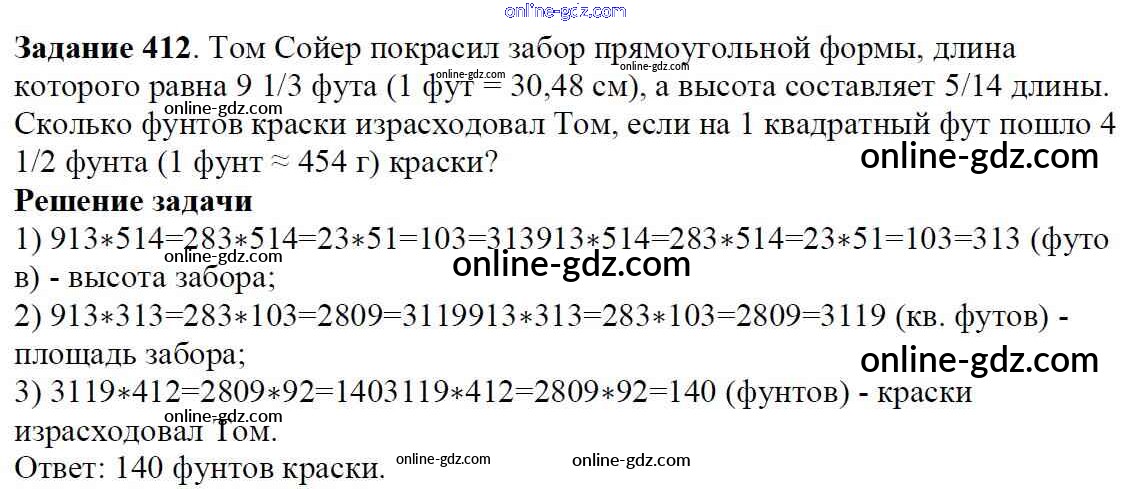 Готовые домашние задания по Математике за 6 класс Учебник Мерзляк, Полонский Алгоритм успеха 2016 - Глава 2. Обыкновенные дроби (упражнения) 412