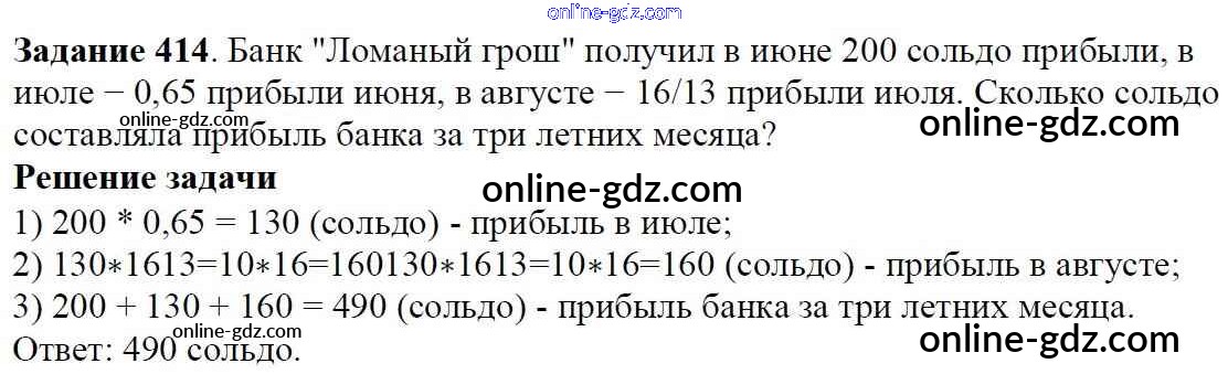 Готовые домашние задания по Математике за 6 класс Учебник Мерзляк, Полонский Алгоритм успеха 2016 - Глава 2. Обыкновенные дроби (упражнения) 414