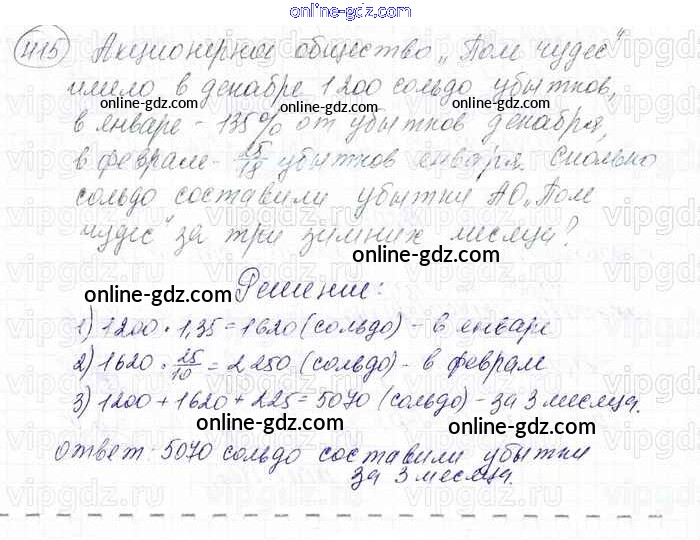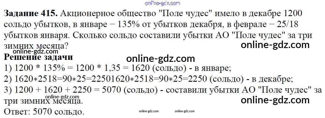 Готовые домашние задания по Математике за 6 класс Учебник Мерзляк, Полонский Алгоритм успеха 2016 - Глава 2. Обыкновенные дроби (упражнения) 415