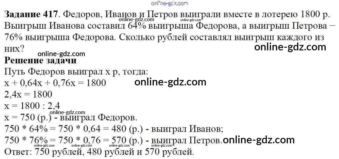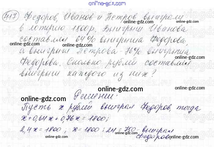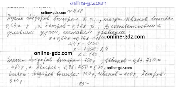 Готовые домашние задания по Математике за 6 класс Учебник Мерзляк, Полонский Алгоритм успеха 2016 - Глава 2. Обыкновенные дроби (упражнения) 417
