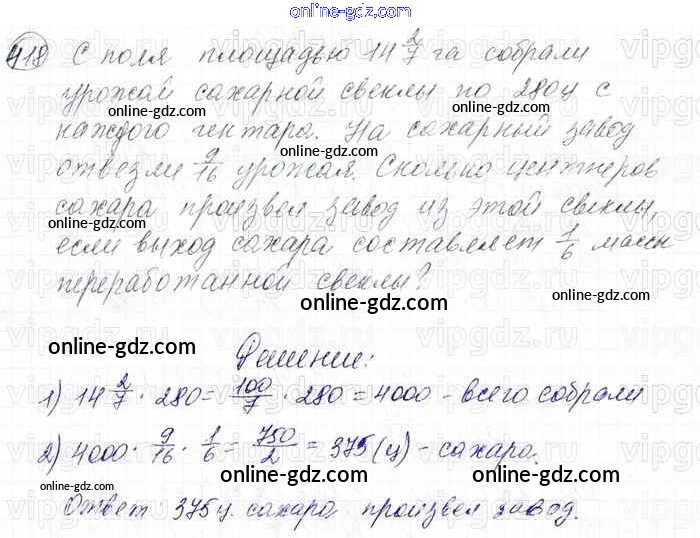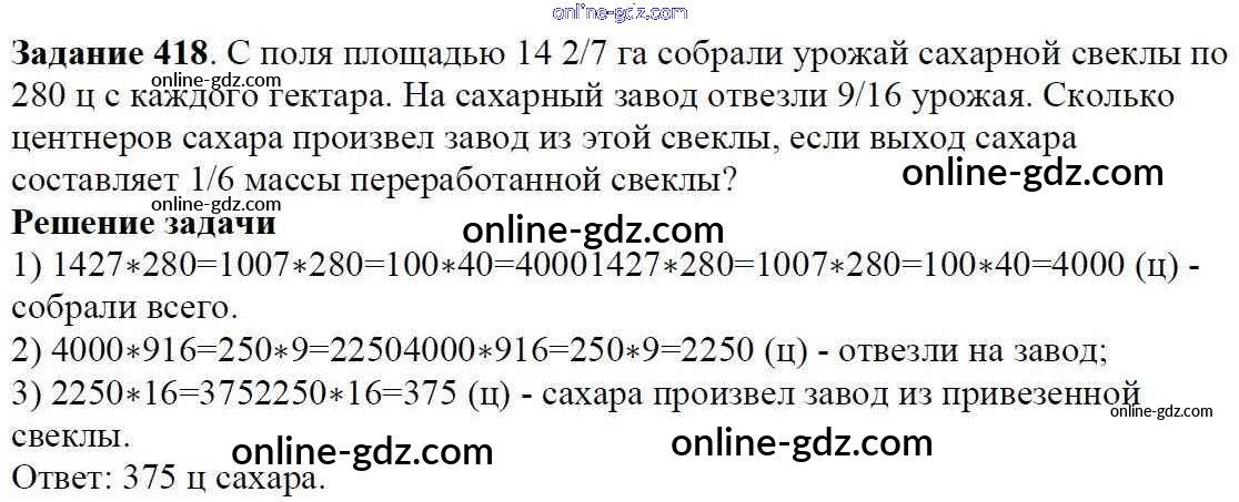 Готовые домашние задания по Математике за 6 класс Учебник Мерзляк, Полонский Алгоритм успеха 2016 - Глава 2. Обыкновенные дроби (упражнения) 418