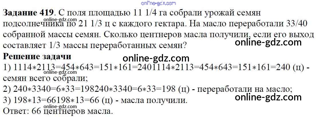 Готовые домашние задания по Математике за 6 класс Учебник Мерзляк, Полонский Алгоритм успеха 2016 - Глава 2. Обыкновенные дроби (упражнения) 419