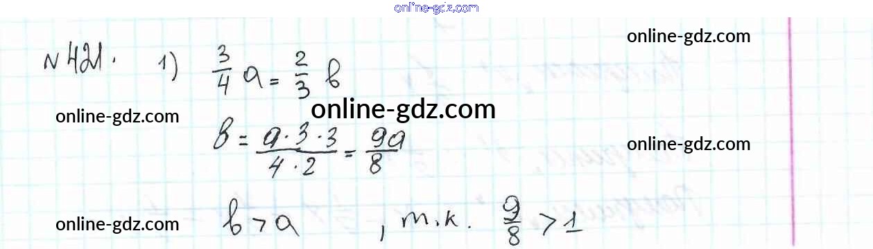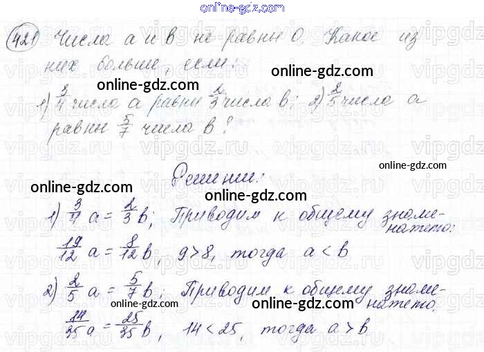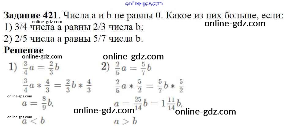 Готовые домашние задания по Математике за 6 класс Учебник Мерзляк, Полонский Алгоритм успеха 2016 - Глава 2. Обыкновенные дроби (упражнения) 421