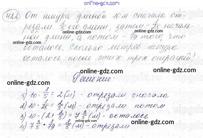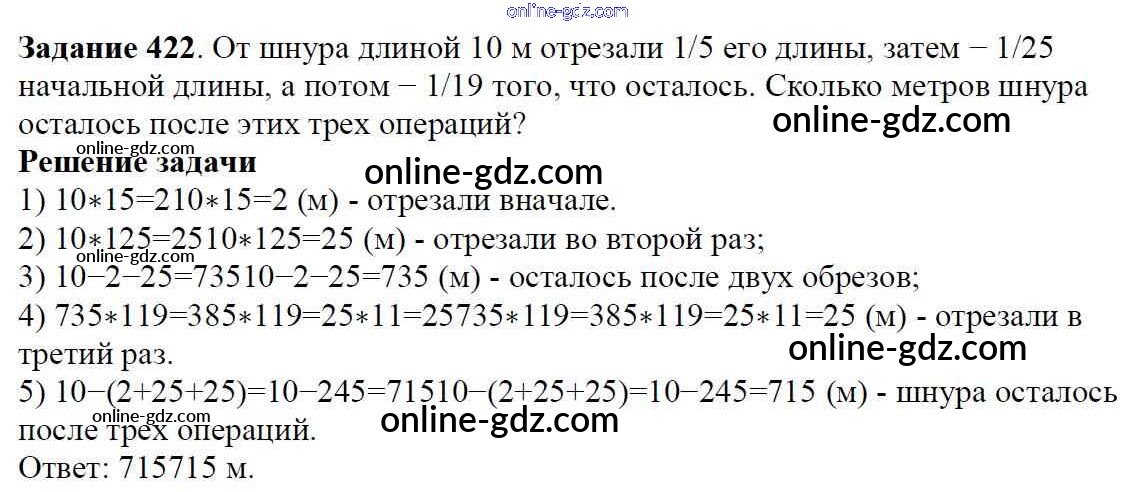 Готовые домашние задания по Математике за 6 класс Учебник Мерзляк, Полонский Алгоритм успеха 2016 - Глава 2. Обыкновенные дроби (упражнения) 422